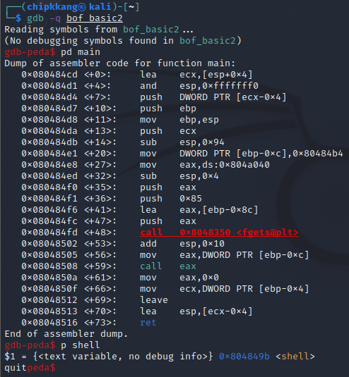 리눅스에서 gdb를 통해 bof_basic2를 실행시키고,