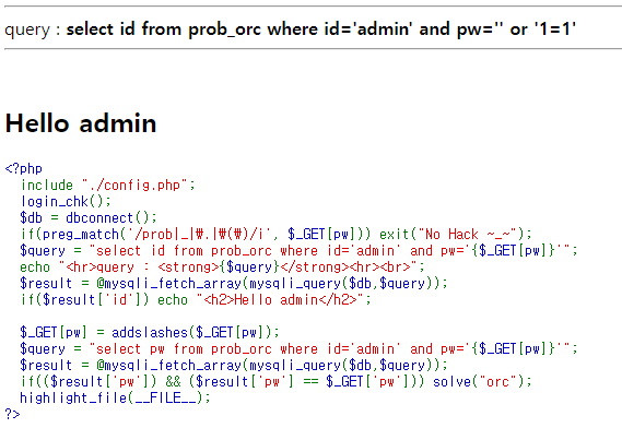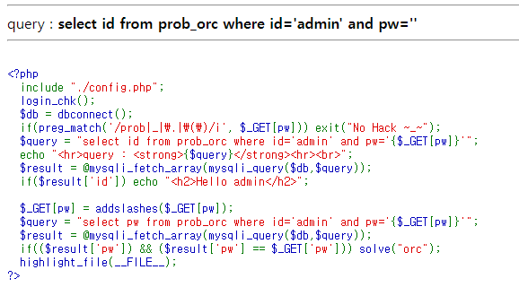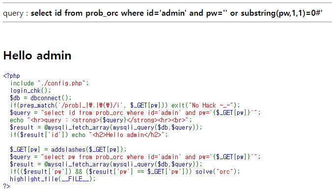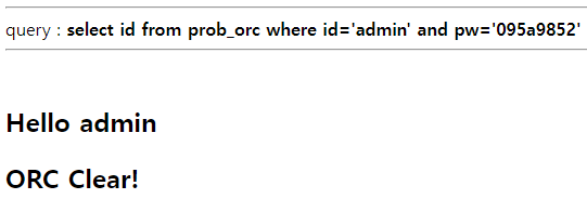 [Lord of SQLInjection] orc 문제 Write-up 본문